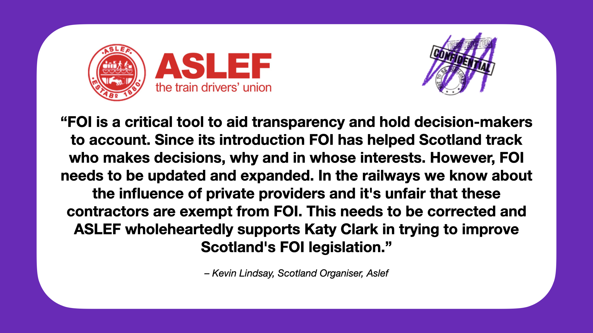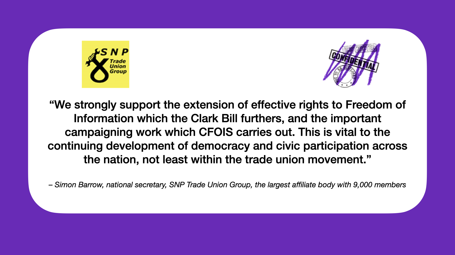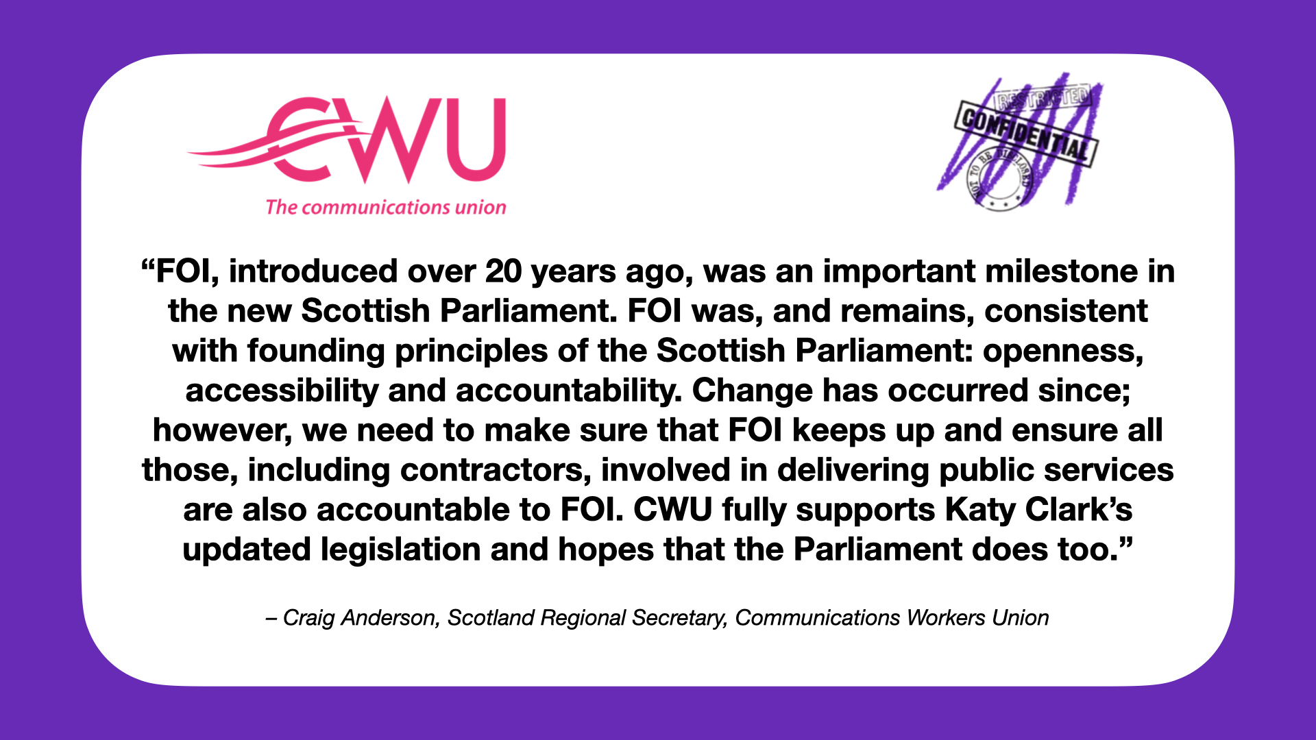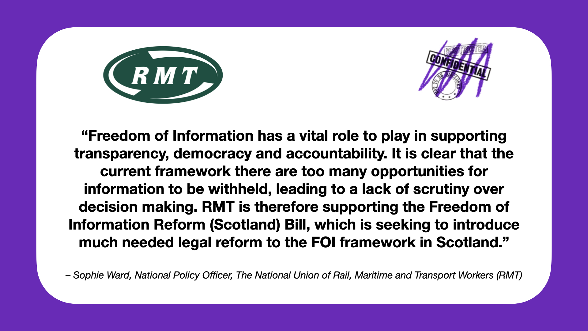 - Launch a campaign to build all party support to reform FoISA via Katy Clark MSP’s Member’s Bill, by promoting a compelling, evidence based narrative for parliamentary action.